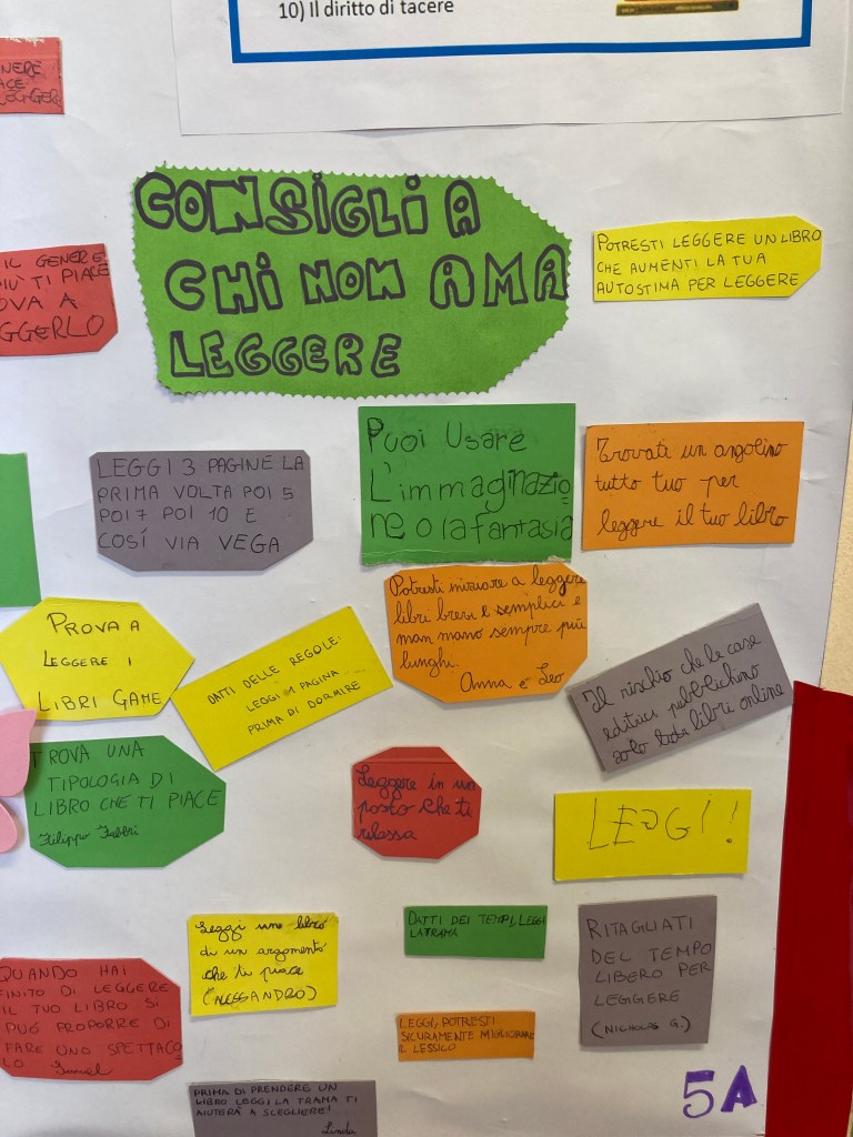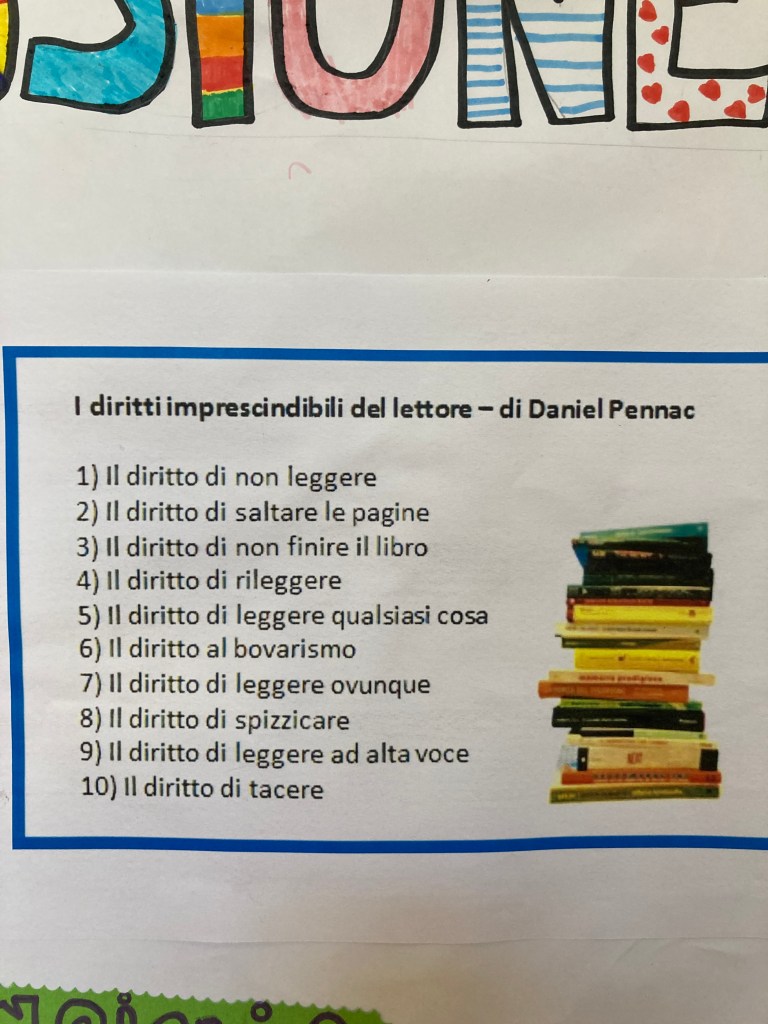 Si scopre poi che un famoso scrittore (D. Pennac) ha addirittura scritto un decalogo. Il confronto termina con un’ultima riflessione: “che cos’è per voi leggere?“